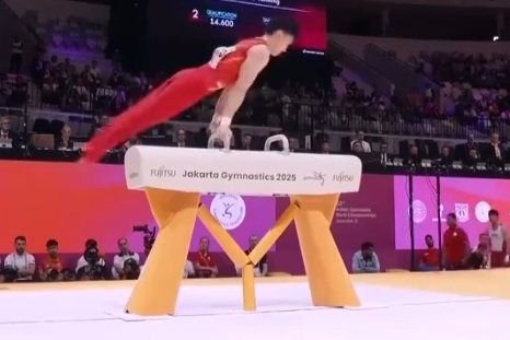 中国选手洪延明夺得体操世锦赛男子鞍马冠军