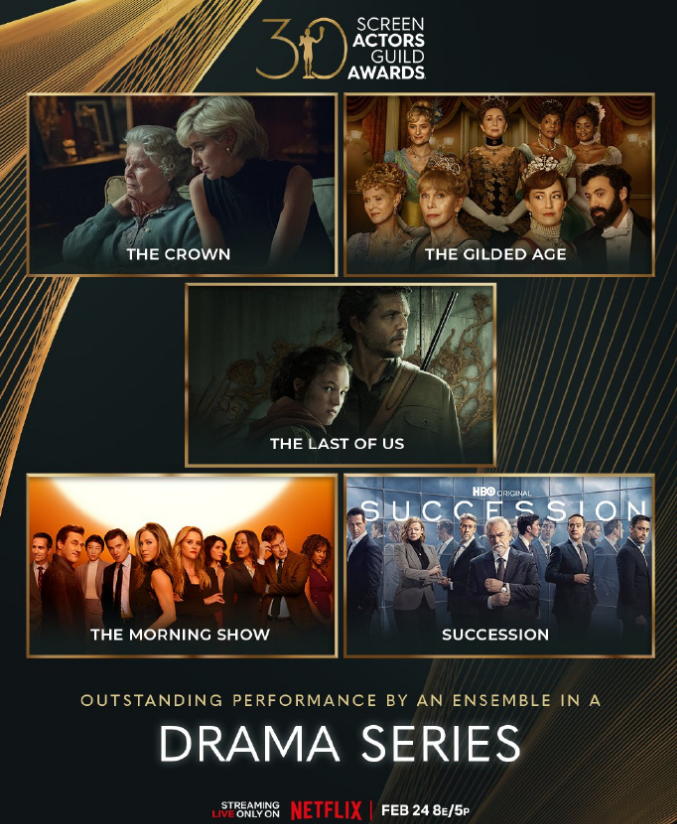 第30届SAG美国演员工会奖完整提名名单揭晓,电影类《奥本海默》《芭比》各4提领跑,剧集类《继承之战》5提领跑,《五月十二月》挂零,莱昂纳多·迪卡普里奥、格蕾塔·李、桑德拉·惠勒、马克·鲁法洛等未入围。SAG是奥斯卡四大演员类奖项最重要的风向标,颁奖礼将于2月24日举办。