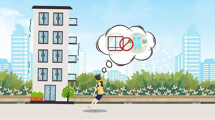 远离可能坠落的物体,不要站在窗边或阳台。