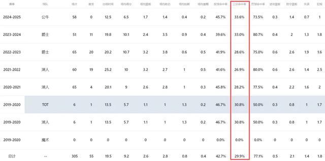 从以上数据就能看出小塔克如今在NBA无人问津的原因,即缺少投射能力,三分球水平聊胜于无,甚至可以说对手能对他采取放空的防守策略,因此注定了难有作为。